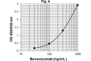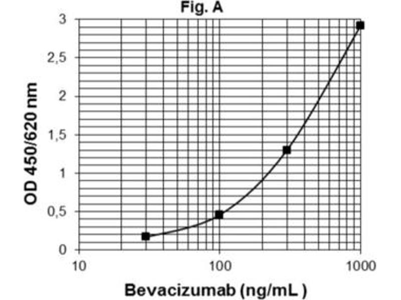 - This ELISA is based on sandwich type ELISA. Diluted standards and samples (serum or plasma) are incubated in the microtiter plate coated with recombinant human vascular endothelial growth factor-A (rhVEGF-A). After incubation, the wells are washed. A horseradish peroxidase (HRP)conjugated anti-human IgG monoclonal antibody is added and binds to the Fc part of Bevacizumab pre-captured by the rhVEGF-A on the surface of the wells. Following incubation, the wells are washed and the bound enzymatic activity is detected by addition of chromogen-substrate. The colour developed is proportional to the amount of Bevacizumab in the sample or standard. Results of samples can be determined by using the standard curve.