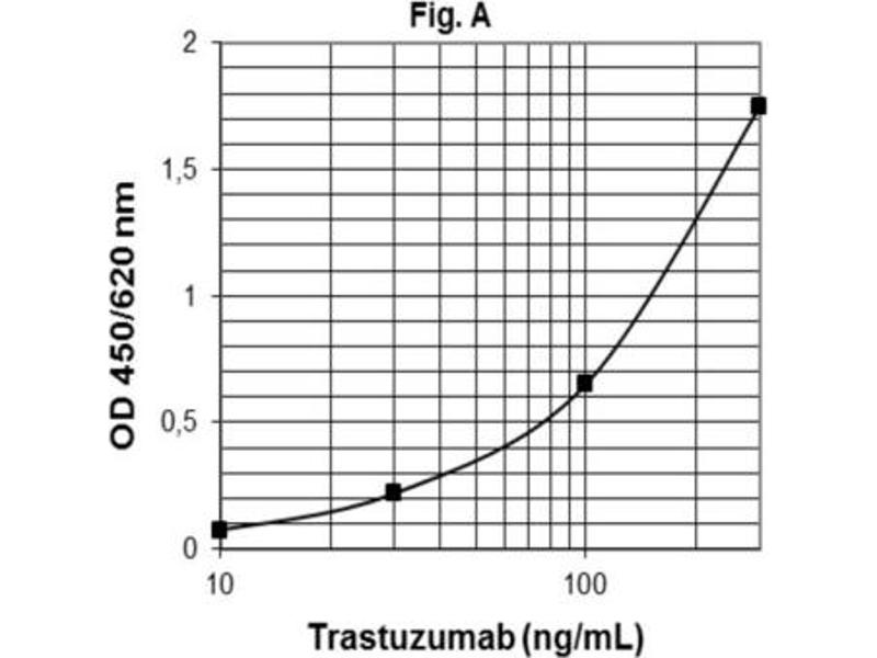 - The Trastuzumab ELISA is a sandwitch-type ELISA. Standards and diluted samples (serum or plasma) are incubated in the microtitre plate coated with the ligand antigen (i.e. recombinant human HER2) for Trastuzumab. After incubation, the wells are washed. A horseradish peroxidase (HRP)- conjugated anti-human IgG monoclonal antibody is added and binds to the Fc part of Trastuzumab pre-captured by the ligand antigen on the surface of the wells. Following incubation, the wells are washed and the bound enzymatic activity is detected by addition of chromogen-substrate. The colour developed is proportional to the amount of Trastuzumab in the sample or standard. Results of samples are determined directly by using the standard curve.