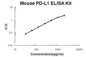 - mouse PD-L1 ELISA Kit was based on standard sandwich enzyme-linked immune-sorbent assay technology. A monoclonal antibody from rat specific for PD-L1 has been precoated onto 96-well plates. Standards(Expression system for standard: NSO, Immunogen sequence: F19-H239) and test samples are added to the wells, a biotinylated detection polyclonal antibody from goat specific for PD-L1 is added subsequently and then followed by washing with PBS or TBS buffer. Avidin-Biotin-Peroxidase Complex was added and unbound conjugates were washed away with PBS or TBS buffer. HRP substrate TMB was used to visualize HRP enzymatic reaction. TMB was catalyzed by HRP to produce a blue color product that changed into yellow after adding acidic stop solution. The density of yellow is proportional to the mouse PD-L1 amount of sample captured in plate.