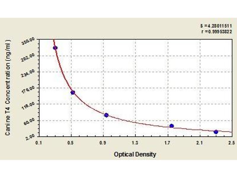 - For the quantitative determination of canine thyroxine(T4) concentrations in serum, plasma, cell culture supernates, tissue homogenates.