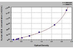 - This assay employs the quantitative sandwich enzyme immunoassay technique. Antibody specific for ADA has been pre-coated onto a microplate. Standards and samples are pipetted into the wells and any ADA present is bound by the immobilized antibody. After removing any unbound substances, a biotin-conjugated antibody specific for ADA is added to the wells. After washing, avidin conjugated Horseradish Peroxidase (HRP) is added to the wells. Following a wash to remove any unbound avidin-enzyme reagent, a substrate solution is added to the wells and color develops in proportion to the amount of ADA bound in the initial step. The color development is stopped and the intensity of the color is measured.