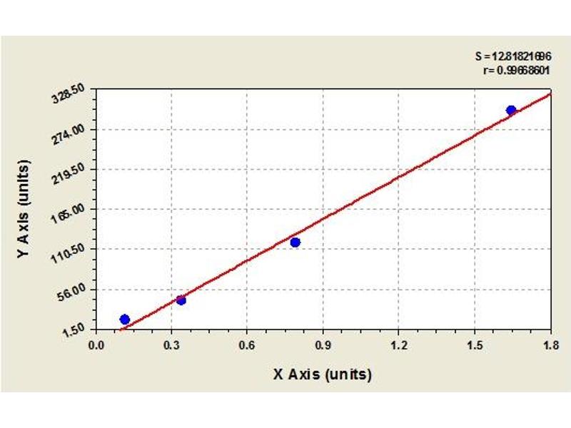 Create a standard curve by reducing the data using computer software capable of generating a four parameter logistic (4-PL) curve fit. As an alternative, construct a standard curve by plotting the mean absorbance for each standard on the x-axis against the concentration on the y-axis and draw a best fit curve through the points on the graph. The data may be linearized by plotting the log of the target antigen concentration versus the log of the O.D. and the best fit line can be determined by regression analysis. This procedure will produce an adequate but less precise fit of the data.