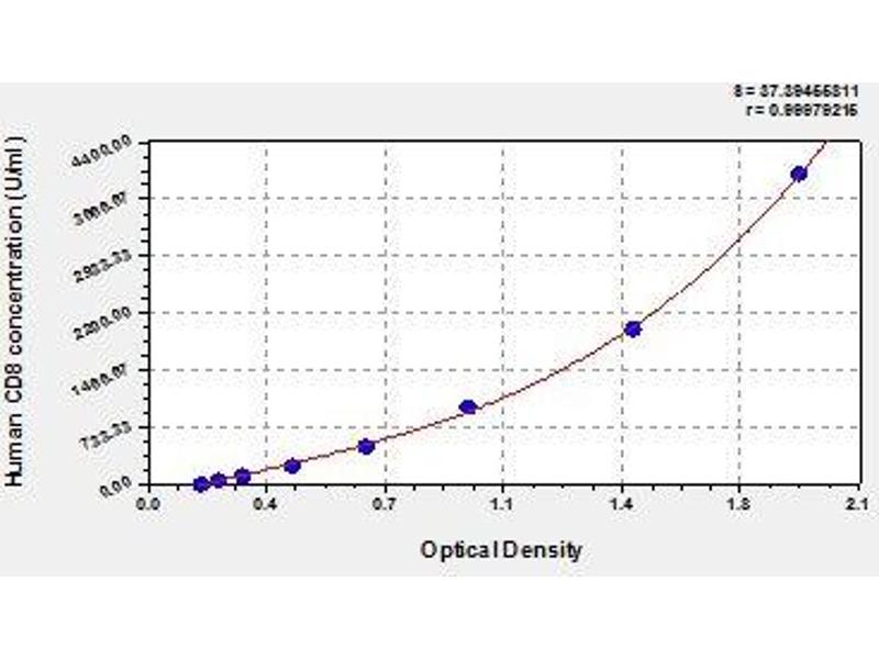 - Antibody specific for CD8A has been pre-coated onto a microplate. Standards and samples are pipetted into the wells and any CD8A present is bound by the immobilized antibody. After removing any unbound substances, a biotin-conjugated antibody specific for CD8A is added to the wells. After washing, avidin conjugated Horseradish Peroxidase (HRP) is added to the wells. Following a wash to remove any unbound avidin-enzyme reagent, a substrate solution is added to the wells and color develops in proportion to the amount of CD8A bound in the initial step. The color development is stopped and the intensity of the color is measured.