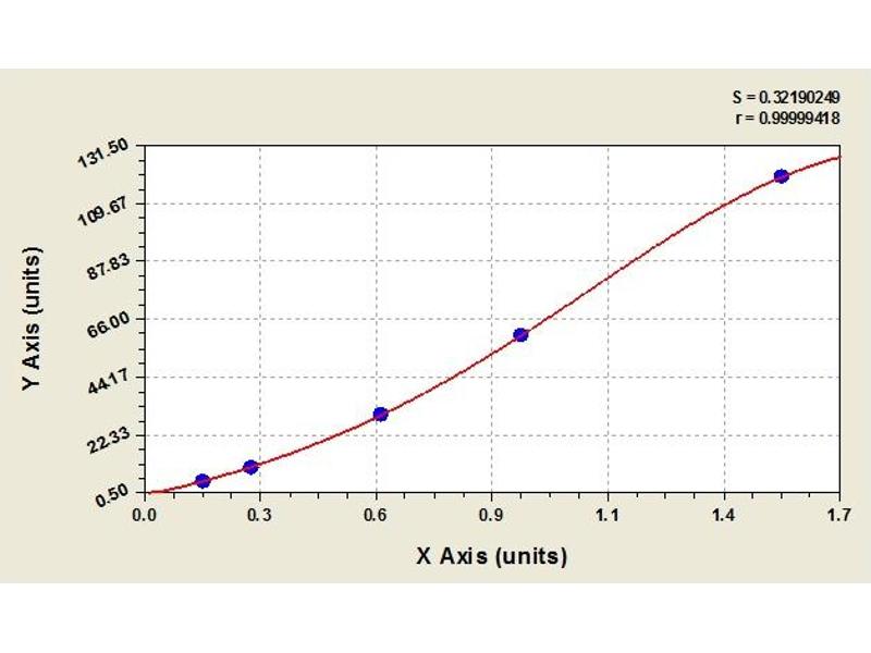 Create a standard curve by reducing the data using computer software capable of generating a four parameter logistic (4-PL) curve fit. As an alternative, construct a standard curve by plotting the mean absorbance for each standard on the x-axis against the concentration on the y-axis and draw a best fit curve through the points on the graph. The data may be linearized by plotting the log of the target antigen concentration versus the log of the O.D. and the best fit line can be determined by regression analysis. This procedure will produce an adequate but less precise fit of the data.