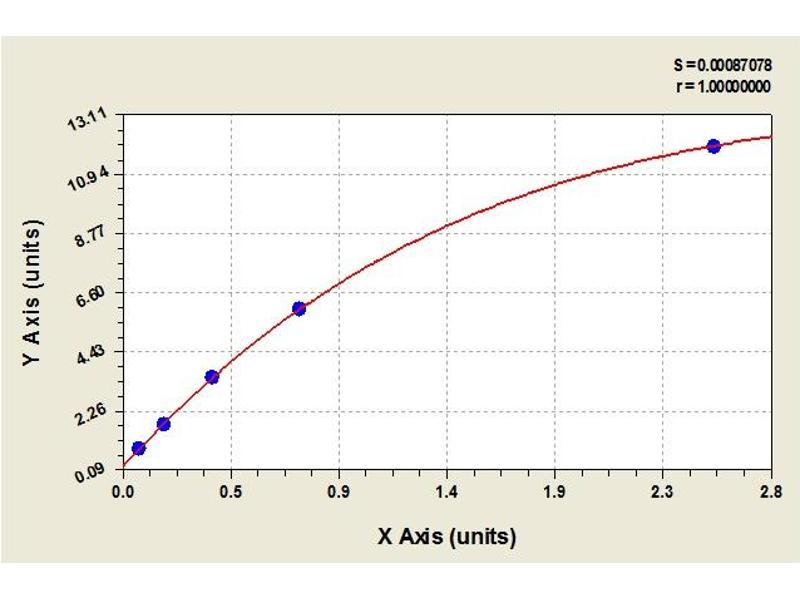 Create a standard curve by reducing the data using computer software capable of generating a four parameter logistic (4-PL) curve fit. As an alternative, construct a standard curve by plotting the mean absorbance for each standard on the x-axis against the concentration on the y-axis and draw a best fit curve through the points on the graph. The data may be linearized by plotting the log of the target antigen concentration versus the log of the O.D. and the best fit line can be determined by regression analysis. This procedure will produce an adequate but less precise fit of the data.