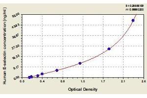 Antibody specific for SELE has been pre-coated onto a microplate. Standards and samples are pipetted into the wells and any SELE present is bound by the immobilized antibody. After removing any unbound substances, a biotin-conjugated antibody specific for SELE is added to the wells. After washing, avidin conjugated Horseradish Peroxidase (HRP) is added to the wells. Following a wash to remove any unbound avidin-enzyme reagent, a substrate solution is added to the wells and color develops in proportion to the amount of SELE bound in the initial step. The color development is stopped and the intensity of the color is measured.