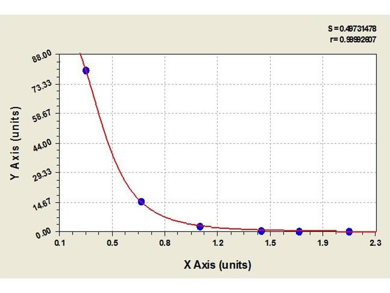 Create a standard curve by reducing the data using computer software capable of generating a four parameter logistic (4-PL) curve fit. As an alternative, construct a standard curve by plotting the mean absorbance for each standard on the x-axis against the concentration on the y-axis and draw a best fit curve through the points on the graph. The data may be linearized by plotting the log of the target antigen concentration versus the log of the O.D. and the best fit line can be determined by regression analysis. This procedure will produce an adequate but less precise fit of the data.