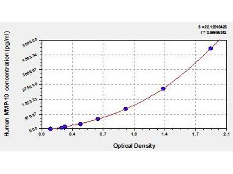 - Antibody specific for MMP10 has been pre-coated onto a microplate. Standards and samples are pipetted into the wells and any MMP10 present is bound by the immobilized antibody. After removing any unbound substances, a biotin-conjugated antibody specific for MMP10 is added to the wells. After washing, avidin conjugated Horseradish Peroxidase (HRP) is added to the wells. Following a wash to remove any unbound avidin-enzyme reagent, a substrate solution is added to the wells and color develops in proportion to the amount of MMP10 bound in the initial step. The color development is stopped and the intensity of the color is measured.