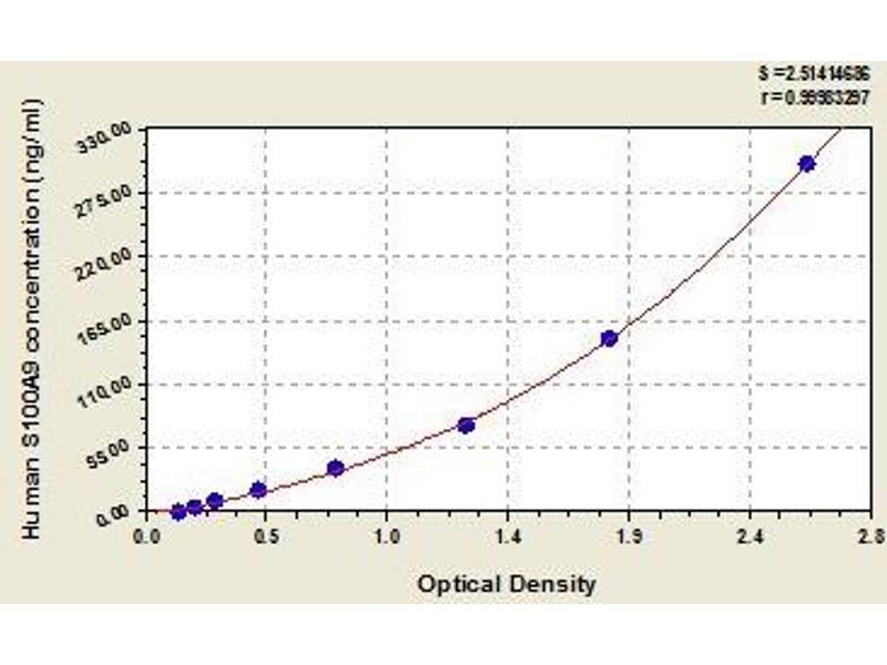 - For the quantitative determination of human S100 calcium binding protein A9/calgranulin B (S100A9) concentrations in serum, plasma, tissue homogenates.