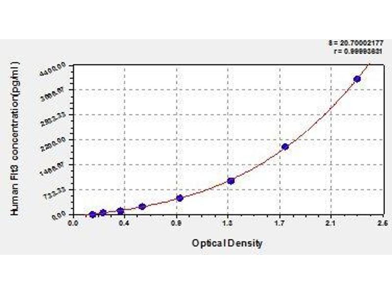- Antibody specific for FLT3 has been pre-coated onto a microplate. Standards and samples are pipetted into the wells and any FLT3 present is bound by the immobilized antibody. After removing any unbound substances, a biotin-conjugated antibody specific for FLT3 is added to the wells. After washing, avidin conjugated Horseradish Peroxidase (HRP) is added to the wells. Following a wash to remove any unbound avidin-enzyme reagent, a substrate solution is added to the wells and color develops in proportion to the amount of FLT3 bound in the initial step. The color development is stopped and the intensity of the color is measured.