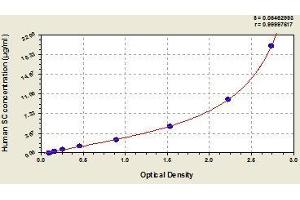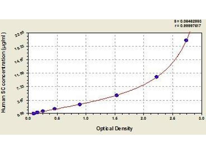 - This assay employs the quantitative sandwich enzyme immunoassay technique. Antibody specific for SC has been pre-coated onto a microplate. Standards and samples are pipetted into the wells and any SC present is bound by the immobilized antibody. After removing any unbound substances, a biotin-conjugated antibody specific for SC is added to the wells. After washing, avidin conjugated Horseradish Peroxidase (HRP) is added to the wells. Following a wash to remove any unbound avidin-enzyme reagent, a substrate solution is added to the wells and color develops in proportion to the amount of SC bound in the initial step. The color development is stopped and the intensity of the color is measured.