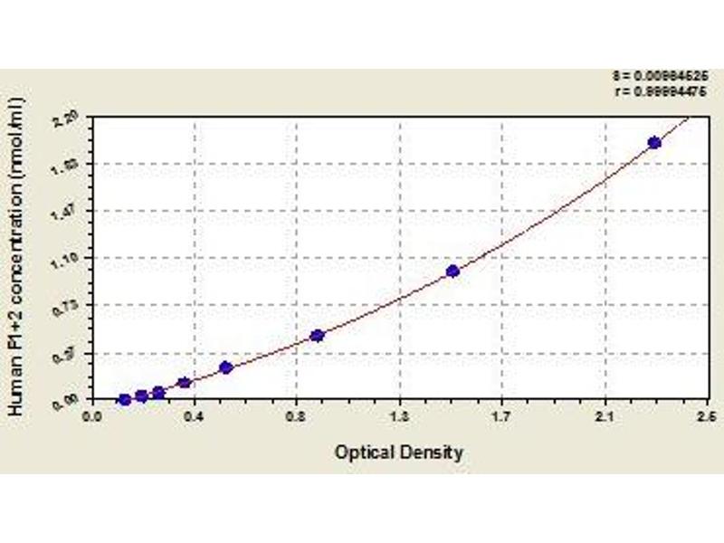 - This assay employs the quantitative sandwich enzyme immunoassay technique. Antibody specific for F1+2 has been pre-coated onto a microplate. Standards and samples are pipetted into the wells and any F1+2 present is bound by the immobilized antibody. After removing any unbound substances, a biotin-conjugated antibody specific for F1+2 is added to the wells. After washing, avidin conjugated Horseradish Peroxidase (HRP) is added to the wells. Following a wash to remove any unbound avidin-enzyme reagent, a substrate solution is added to the wells and color develops in proportion to the amount of F1+2 bound in the initial step. The color development is stopped and the intensity of the color is measured.