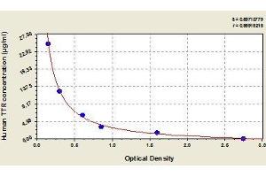 - This assay employs the competitive inhibition enzyme immunoassay technique. The microtiter plate provided in this kit has been pre-coated with TTR. Standards or samples are added to the appropriate microtiter plate wells with Horseradish Peroxidase (HRP) conjugated antibody preparation specific for TTR. The competitive inhibition reaction is launched between with pre-coated TTR and TTR in samples. A substrate solution is added to the wells and the color develops in opposite to the amount of TTR in the samples. The color development is stopped and the intensity of the color is measured.