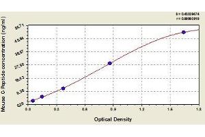 Create a standard curve by reducing the data using computer software capable of generating a four parameter logistic (4-PL) curve fit. As an alternative, construct a standard curve by plotting the mean absorbance for each standard on the x-axis against the concentration on the y-axis and draw a best fit curve through the points on the graph. The data may be linearized by plotting the log of the target antigen concentration versus the log of the O.D. and the best fit line can be determined by regression analysis. This procedure will produce an adequate but less precise fit of the data.