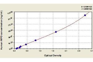 - Antibody specific for MPO has been pre-coated onto a microplate. Standards and samples are pipetted into the wells and any MPO present is bound by the immobilized antibody. After removing any unbound substances, a biotin-conjugated antibody specific for MPO is added to the wells. After washing, avidin conjugated Horseradish Peroxidase (HRP) is added to the wells. Following a wash to remove any unbound avidin-enzyme reagent, a substrate solution is added to the wells and color develops in proportion to the amount of MPO bound in the initial step. The color development is stopped and the intensity of the color is measured.