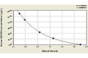 - This assay employs the competitive inhibition enzyme immunoassay technique. The microtiter plate provided in this kit has been pre-coated with an antibody. Standards or samples are added to the appropriate microtiter plate wells with Horseradish Peroxidase (HRP) conjugated 25HVD3 Hapten. The competitive inhibition reaction is launched between with HRP-conjugated 25HVD3 Hapten and 25HVD3 in samples. A substrate solution is added to the wells and the color develops in opposite to the amount of 25HVD3 in the sample. The color development is stopped and the intensity of the color is measured.