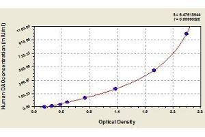 - Antibody specific for DAO has been pre-coated onto a microplate. Standards and samples are pipetted into the wells and any DAO present is bound by the immobilized antibody. After removing any unbound substances, a biotin-conjugated antibody specific for DAO is added to the wells. After washing, avidin conjugated Horseradish Peroxidase (HRP) is added to the wells. Following a wash to remove any unbound avidin-enzyme reagent, a substrate solution is added to the wells and color develops in proportion to the amount of DAO bound in the initial step. The color development is stopped and the intensity of the color is measured.