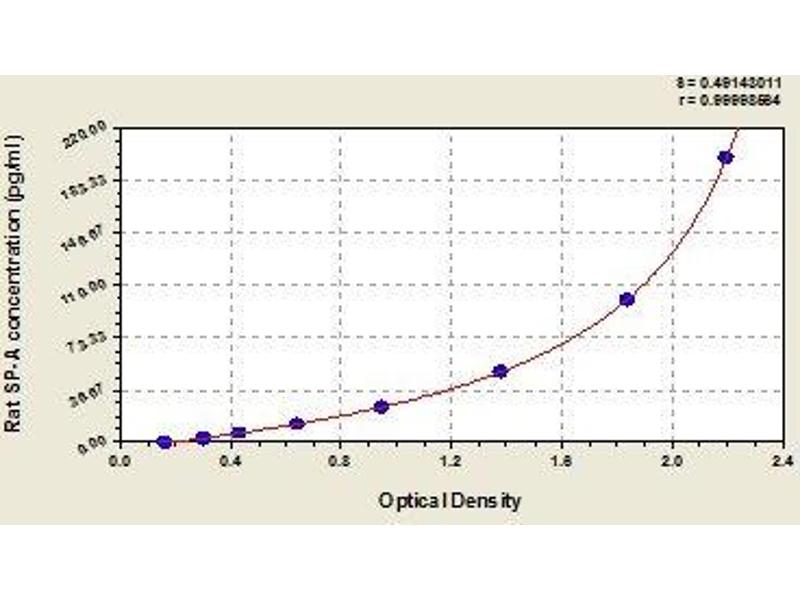 - For the quantitative determination of rat pulmonary surfactant-associated protein A (SP-A) concentrations in serum, plasma, cell culture supernates, bronchoalveolar lavage fluid, cerebrospinal fluid (CSF), urine and tissue homogenates.