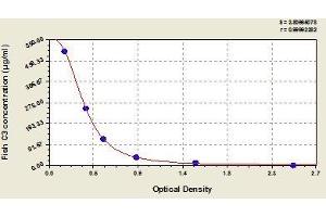 Create a standard curve by reducing the data using computer software capable of generating a four parameter logistic (4-PL) curve fit. As an alternative, construct a standard curve by plotting the mean absorbance for each standard on the x-axis against the concentration on the y-axis and draw a best fit curve through the points on the graph. The data may be linearized by plotting the log of the target antigen concentration versus the log of the O.D. and the best fit line can be determined by regression analysis. This procedure will produce an adequate but less precise fit of the data.