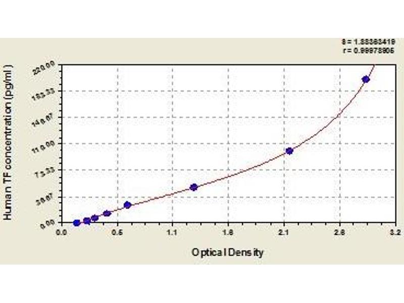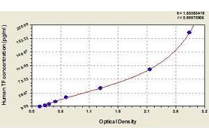 - This assay employs the quantitative sandwich enzyme immunoassay technique. Antibody specific for TF has been pre-coated onto a microplate. Standards and samples are pipetted into the wells and any TF present is bound by the immobilized antibody. After removing any unbound substances, a biotin-conjugated antibody specific for TF is added to the wells. After washing, avidin conjugated Horseradish Peroxidase (HRP) is added to the wells. Following a wash to remove any unbound avidin-enzyme reagent, a substrate solution is added to the wells and color develops in proportion to the amount of TF bound in the initial step. The color development is stopped and the intensity of the color is measured.
