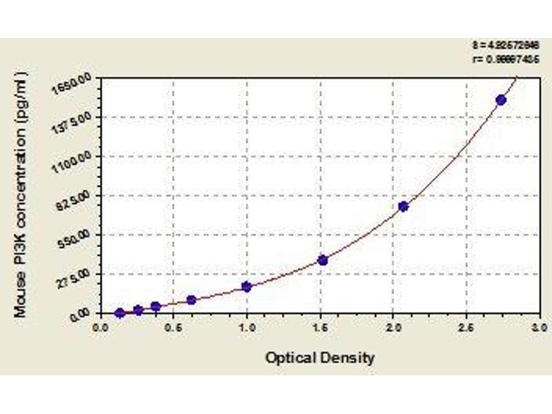 Antibody specific for PIK3CA has been pre-coated onto a microplate. Standards and samples are pipetted into the wells and any PIK3CA present is bound by the immobilized antibody. After removing any unbound substances, a biotin-conjugated antibody specific for PIK3CA is added to the wells. After washing, avidin conjugated Horseradish Peroxidase (HRP) is added to the wells. Following a wash to remove any unbound avidin-enzyme reagent, a substrate solution is added to the wells and color develops in proportion to the amount of PIK3CA bound in the initial step. The color development is stopped and the intensity of the color is measured.