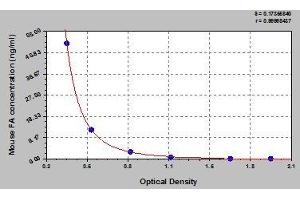 Create a standard curve by reducing the data using computer software capable of generating a four parameter logistic (4-PL) curve fit. As an alternative, construct a standard curve by plotting the mean absorbance for each standard on the x-axis against the concentration on the y-axis and draw a best fit curve through the points on the graph. The data may be linearized by plotting the log of the target antigen concentration versus the log of the O.D. and the best fit line can be determined by regression analysis. This procedure will produce an adequate but less precise fit of the data.