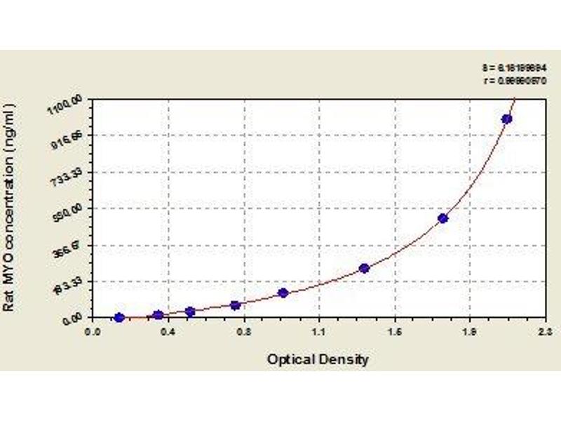 - This assay employs the quantitative sandwich enzyme immunoassay technique. Antibody specific for MYO has been pre-coated onto a microplate. Standards and samples are pipetted into the wells and any MYO present is bound by the immobilized antibody. After removing any unbound substances, a biotin-conjugated antibody specific for MYO is added to the wells. After washing, avidin conjugated Horseradish Peroxidase (HRP) is added to the wells. Following a wash to remove any unbound avidin-enzyme reagent, a substrate solution is added to the wells and color develops in proportion to the amount of MYO bound in the initial step. The color development is stopped and the intensity of the color is measured.