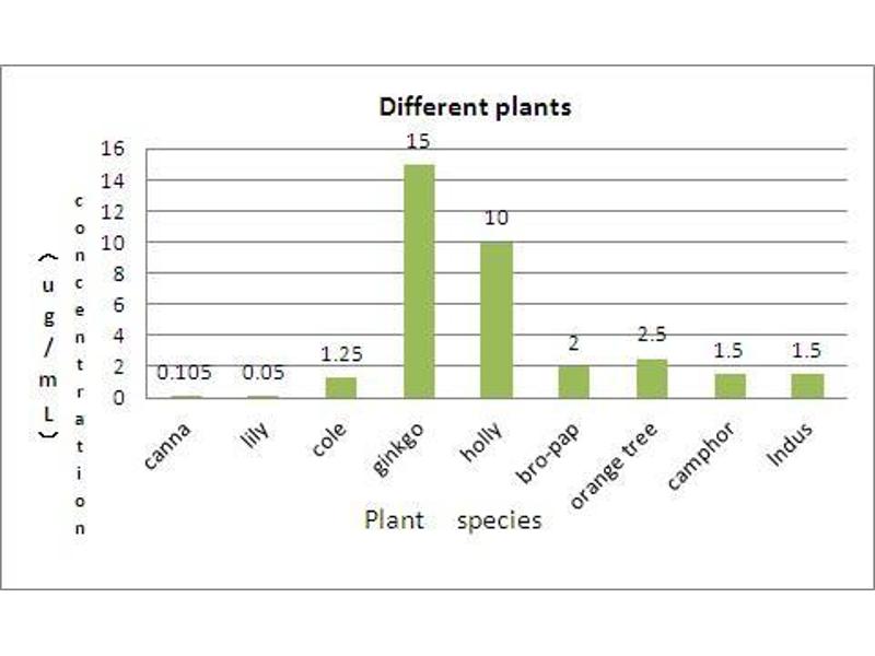 Xylem saps from plants Xylem sap from wild plants can be obtained by cutting the plant about 10-15 cm above the ground (preferably early in the morning, to fully utilize the root pressure). Xylem sap collects in the silicon tube through root pressure. If there is risk of too much exposure to light, the tube should be wrapped in aluminum foil. Depending on the plant and the treatment, about 0.5mL should be obtained within 1-2 hours. The sap is collected from the silicon tube into an Eppendorf-vial, using a pipette, immediately frozen and stored for analysis at -80°C. This method has been used successfully on wheat, oil seed rape, maize and rice. Crude extracts Crude extracts of gingko, phoenix tree, rape ect have been tested to date with the extraction method describe below. Weigh out 0.5 g of freeze dried, finely ground material into a centrifuge tube containing 4.5 ml of sample extraction buffer. Shake the samples overnight in the cold (4-5°C) and dark. Spin down the solids and use the supernatant directly or diluted with buffer or H2O in the ELISA. For materials other than the ones mentioned above, the validity of this extraction method should be tested by both, cross-reaction test and confirming measurements with a HPLC- GC set-up.(Dilution factor: 10)