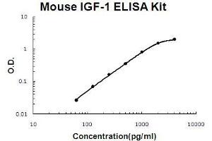 - mouse IGF-1 ELISA Kit was based on standard sandwich enzyme-linked immune-sorbent assay technology. A monoclonal antibody from rat specific for IGF-1 has been precoated onto 96-well plates. Standards(E.coli, G49-A118) and test samples are added to the wells, a biotinylated detection polyclonal antibody from goat specific for IGF-1is added subsequently and then followed by washing with PBS or TBS buffer. Avidin-Biotin-Peroxidase Complex was added and unbound conjugates were washed away with PBS or TBS buffer. HRP substrate TMB was used to visualize HRP enzymatic reaction. TMB was catalyzed by HRP to produce a blue color product that changed into yellow after adding acidic stop solution. The density of yellow is proportional to the mouse IGF-1 amount of sample captured in plate.