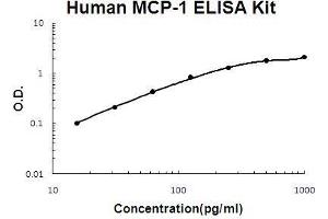 - human MCP-1 ELISA Kit was based on standard sandwich enzyme-linked immune-sorbent assay technology. A monoclonal antibody from mouse specific for MCP-1 has been precoated onto 96-well plates. Standards(E.coli, 24-T99) and test samples are added to the wells, a biotinylated detection polyclonal antibody from goat specific for MCP-1 is added subsequently and then followed by washing with PBS or TBS buffer. Avidin-Biotin-Peroxidase Complex was added and unbound conjugates were washed away with PBS or TBS buffer. HRP substrate TMB was used to visualize HRP enzymatic reaction. TMB was catalyzed by HRP to produce a blue color product that changed into yellow after adding acidic stop solution. The density of yellow is proportional to the human MCP-1 amount of sample captured in plate.
