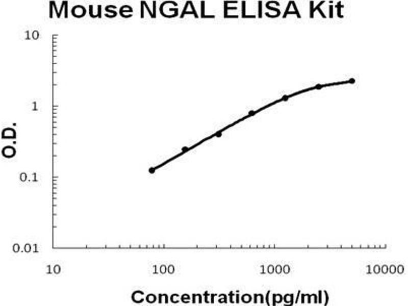 Background: Lipocalin-2(LCN2), also known as NGAL, is a protein associated with neutrophil gelatinase.1 The LCN2 gene is located at 9q34 and contains 7 exons.2 The 25-kD LCN2 protein is believed to bind small lipophilic substances such as bacteria-derived lipopolysaccharide(LPS) and formylpeptides and may function as a modulator of inflammation. NGAL tightly binds bacterial catecholate-type ferric siderophores through a cyclically permuted, hybrid electrostatic/cation-pi interaction and is a potent bacteriostatic agent in iron-limiting conditions.3 The primary LCN2 transcript is 3,696 nucleotides long, and the processed transcript is 809 nucleotides long.4 LCN2 expression in adult bone marrow, uterus, prostate, salivary gland, stomach, appendix, colon, trachea, and lung, and in fetal spleen and lung. The standard product used in this kit is recombinant mouse NGAL, consisting of 179 amino acids with the molecular mass of 22KDa.