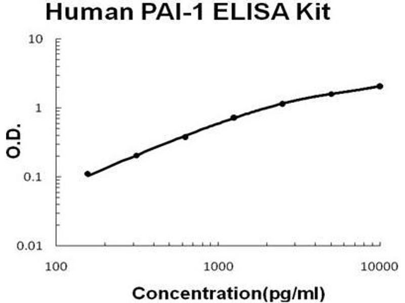 Background: Plasminogen activator inhibitor-1 is the principal inhibitor of tissue plasminogen activator(tPA) and urokinase(uPA), the activators of plasminogen and hence fibrinolysis(the physiological breakdown of blood clots). It is a serine protease inhibitor(serpin) protein(SERPINE1). PAI-1 is mainly produced by the endothelium(cells lining blood vessels), but is also secreted by other tissue types, such as adipose tissue. The PAI-1 gene is located on the seventh chromosome(7q21.3-q22).1 Congenital deficiency of PAI-1 leads to a hemorrhagic diathesis(a tendency to hemorrhage). PAI-1 is present in increased levels in various disease states(such as a number of forms of cancer), as well as in obesity and the metabolic syndrome. It has been linked to the increased occurrence of thrombosis in patients with these conditions. Additionally, it has been shown to interact with ORM1.2 The standard product used in this kit is recombinant human PAI-1 with the molecular mass of 43KDa.