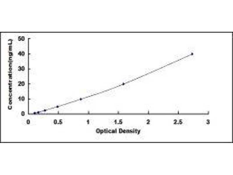 2. Standard - Reconstitute the Standard with 1.0 mL of Standard Diluent, keep for 10 minutes at room temperature, shake gently (not to foam). The concentration of the standard in the stock solution is 40 ng/mL. Prepare 7 tubes containing 0.5 mL Standard Diluent and produce a double dilution series. Mix each tube thoroughly before the next transfer. Set up 7 points of diluted standard such as 40 ng/mL, 20 ng/mL, 10 ng/mL, 5 ng/mL, 2.5 ng/mL, 1.25 ng/mL, 0.625 ng/mL, and the last microcentrifuge tube with Standard Diluent is the blank as 0 ng/mL.