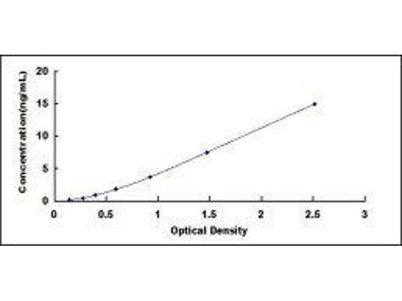 2. Standard - Reconstitute the Standard with 1.0 mL of Standard Diluent, keep for 10 minutes at room temperature, shake gently (not to foam). The concentration of the standard in the stock solution is 30 ng/mL. Firstly dilute the stock solution to 15 ng/mL and the diluted standard serves as the highest standard (15 ng/mL). Then prepare 7 tubes containing 0.5 mL Standard Diluent and use the diluted standard to produce a double dilution series. Mix each tube thoroughly before the next transfer. Set up 7 points of diluted standard such as 15 ng/mL, 7.5 ng/mL, 3.75 ng/mL, 1.88 ng/mL, 0.94 ng/mL, 0.47 ng/mL, 0.24 ng/mL, and the last microcentrifuge tube with Standard Diluent is the blank as 0 ng/mL.