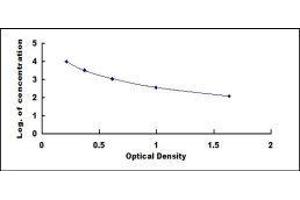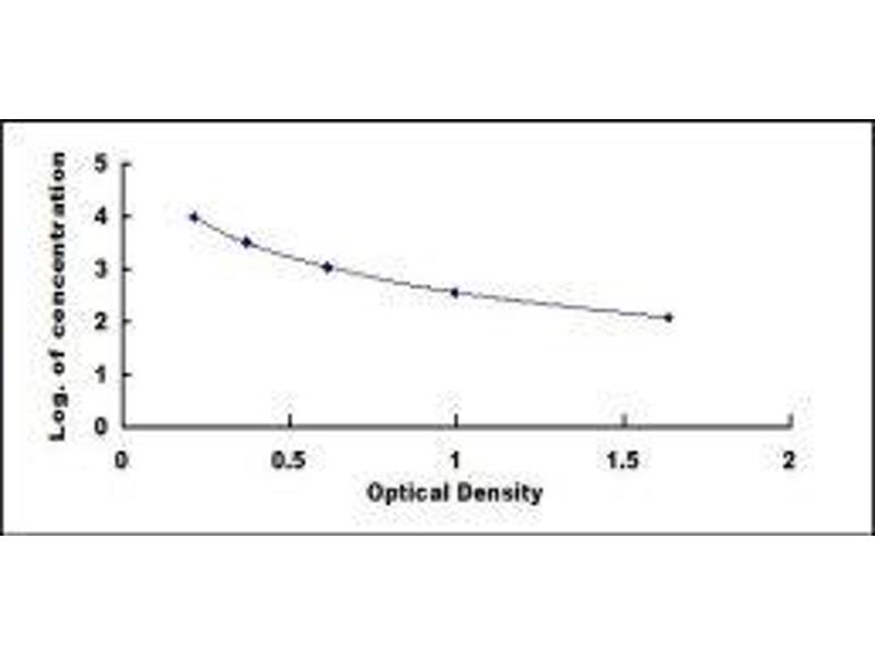In order to make the calculation easier, we plot the O.D. value of the standard (X-axis) against the log of concentration of the standard (Y-axis), although concentration is the independent variable and O.D. value is the dependent variable. The O.D. values of the standard curve may vary according to the conditions of assay performance (e.g. operator, pipetting technique, washing technique or temperature effects). Typical standard curve below is provided for reference only. -
