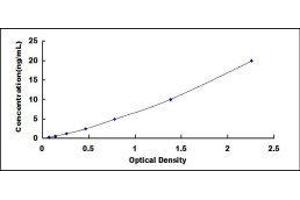 In order to make the calculation easier, we plot the O.D. value of the standard (X-axis) against the log of concentration of the standard (Y-axis), although concentration is the independent variable and O.D. value is the dependent variable. The O.D. values of the standard curve may vary according to the conditions of assay performance (e.g. operator, pipetting technique, washing technique or temperature effects). Typical standard curve below is provided for reference only. -