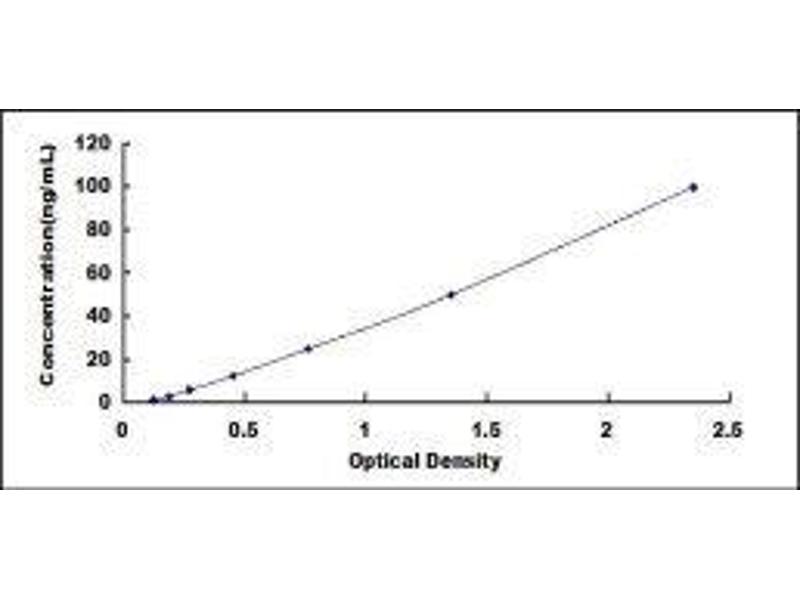- Standard - Reconstitute the Standard with 1.0 mL of Standard Diluent, keep for 10 minutes at room temperature, shake gently (not to foam). The concentration of the standard in the stock solution is 400 ng/mL. Firstly dilute the stock solution to 100 ng/mL and the diluted standard serves as the highest standard (100 ng/mL). Then prepare 7 tubes containing 0.5 mL Standard Diluent and use the diluted standard to produce a double dilution series. Mix each tube thoroughly before the next transfer. Set up 7 points of diluted standard such as 100 ng/mL, 50 ng/mL, 25 ng/mL, 12.5 ng/mL, 6.25 ng/mL, 3.12 ng/mL, 1.56 ng/mL, and the last microcentrifuge tube with Standard Diluent is the blank as 0 ng/mL.