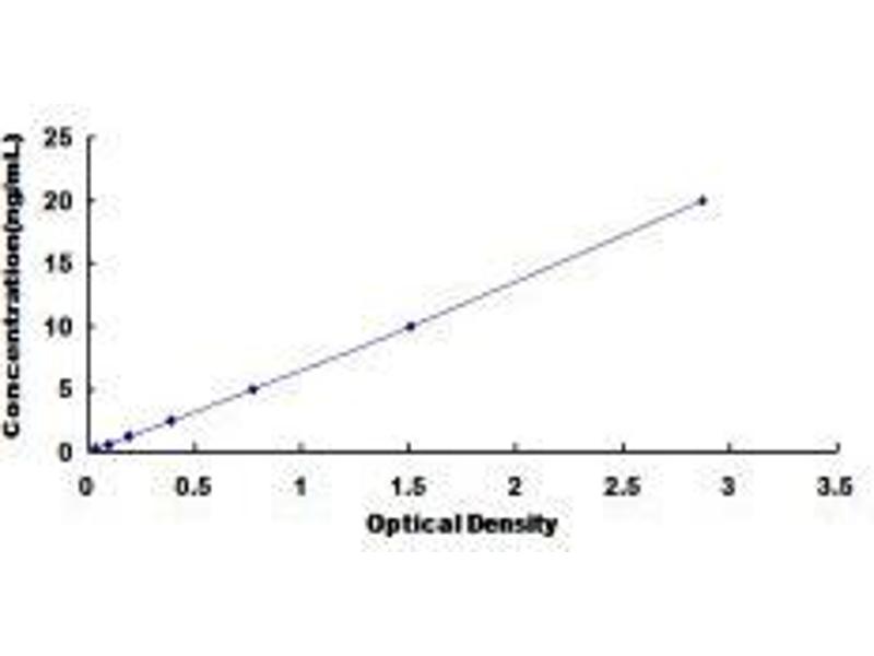 - Standard - Reconstitute the Standard with 0.5 mL of Standard Diluent, keep for 10 minutes at room temperature, shake gently (not to foam). The concentration of the standard in the stock solution is 20 ng/mL. Prepare 7 tubes containing 0.25 mL Standard Diluent and produce a double dilution series. Mix each tube thoroughly before the next transfer. Set up 7 points of diluted standard such as 20 ng/mL, 10 ng/mL, 5 ng/mL, 2.5 ng/mL, 1.25 ng/mL, 0.625 ng/mL, 0.312 ng/mL, and the last microcentrifuge tube with Standard Diluent is the blank as 0 ng/mL.