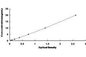 2. Standard - Reconstitute the Standard with 1.0 mL of Standard Diluent, keep for 10 minutes at room temperature, shake gently (not to foam). The concentration of the standard in the stock solution is 20 ng/mL. Prepare 7 tubes containing 0.5 mL Standard Diluent and produce a double dilution series. Mix each tube thoroughly before the next transfer. Set up 7 points of diluted standard such as 20 ng/mL, 10 ng/mL, 5 ng/mL, 2.5 ng/mL, 1.25 ng/mL, 0.625 ng/mL, 0.312 ng/mL, and the last microcentrifuge tube with Standard Diluent is the blank as 0 ng/mL.