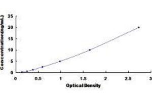 - Standard - Reconstitute the Standard with 1.0 mL of Standard Diluent, keep for 10 minutes at room temperature, shake gently (not to foam). The concentration of the standard in the stock solution is 40 ng/mL. Firstly dilute the stock solution to 20 ng/mL and the diluted standard serves as the highest standard (20 ng/mL). Then prepare 7 tubes containing 0.5 mL Standard Diluent and use the diluted standard to produce a double dilution series. Mix each tube thoroughly before the next transfer. Set up 7 points of diluted standard such as 20 ng/mL, 10 ng/mL, 5 ng/mL, 2.5 ng/mL, 1.25 ng/mL, 0.625 ng/mL, 0.312 ng/mL, and the last microcentrifuge tube with Standard Diluent is the blank as 0 ng/mL.