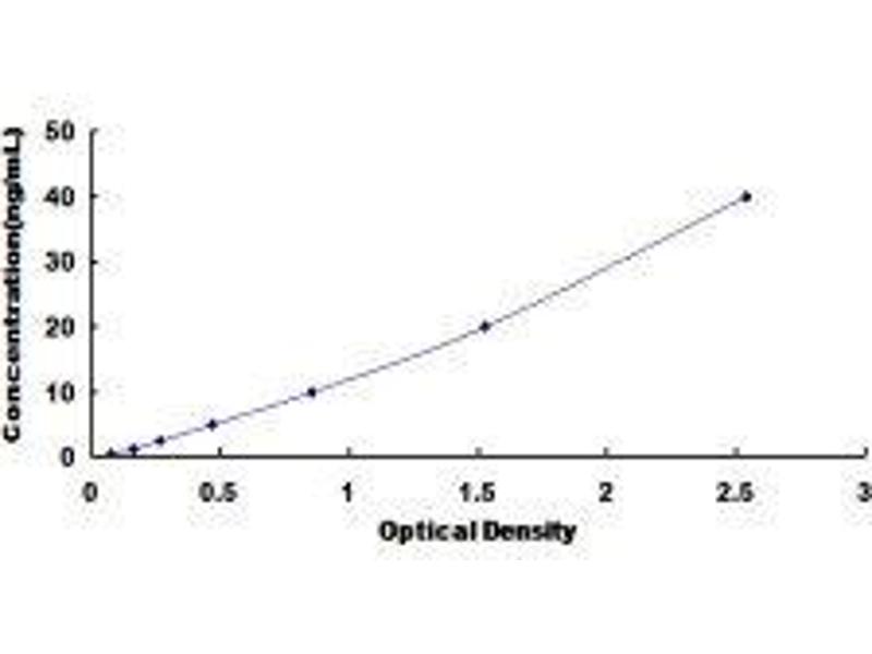2. Standard - Reconstitute the Standard with 1.0 mL of Standard Diluent, keep for 10 minutes at room temperature, shake gently (not to foam). The concentration of the standard in the stock solution is 40 ng/mL. Prepare 7 tubes containing 0.5 mL Standard Diluent and produce a double dilution series. Mix each tube thoroughly before the next transfer. Set up 7 points of diluted standard such as 40 ng/mL, 20 ng/mL, 10 ng/mL, 5 ng/mL, 2.5 ng/mL, 1.25 ng/mL, 0.625 ng/mL, and the last microcentrifuge tube with Standard Diluent is the blank as 0 ng/mL.