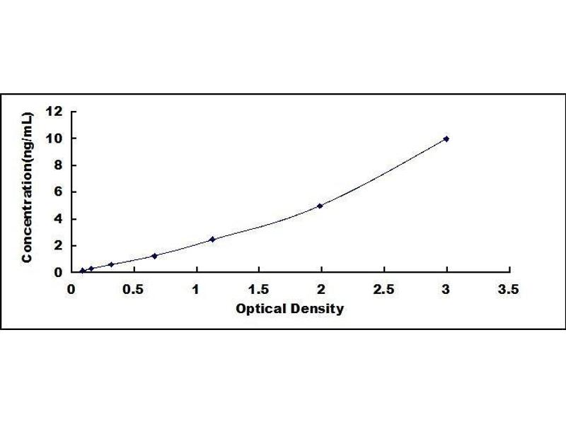 2. Standard - Reconstitute the Standard with 1.0 mL of Standard Diluent, keep for 10 minutes at room temperature, shake gently (not to foam). The concentration of the standard in the stock solution is 50 ng/mL. Firstly dilute the stock solution to 10 ng/mL and the diluted standard serves as the highest standard (10 ng/mL). Then prepare 7 tubes containing 0.5 mL Standard Diluent and use the diluted standard to produce a double dilution series. Mix each tube thoroughly before the next transfer. Set up 7 points of diluted standard such as 10 ng/mL, 5 ng/mL, 2.5 ng/mL, 1.25 ng/mL, 0.625 ng/mL, 0.312 ng/mL, 0.156 ng/mL, and the last microcentrifuge tube with Standard Diluent is the blank as 0 ng/mL.