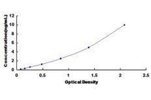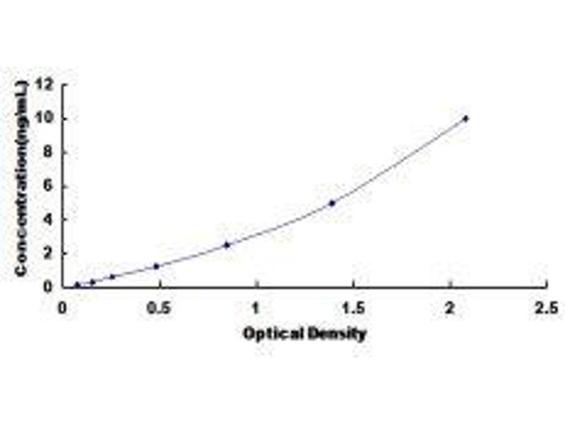 In order to make the calculation easier, we plot the O.D. value of the standard (X-axis) against the known concentration of the standard (Y-axis), although concentration is the independent variable and O.D. value is the dependent variable. However, the O.D. values of the standard curve may vary according to the conditions of assay performance (e.g. operator, pipetting technique, washing technique or temperature effects), plotting log of the data to establish standard curve for each test is recommended. Typical standard curve below is provided for reference only. -
