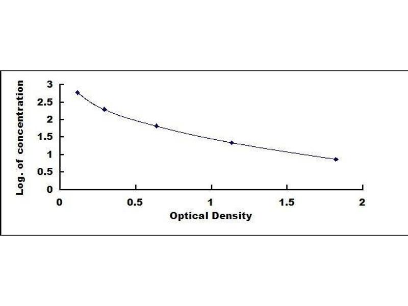 In order to make the calculation easier, we plot the O.D. value of the standard (X-axis) against the log of concentration of the standard (Y-axis), although concentration is the independent variable and O.D. value is the dependent variable. The O.D. values of the standard curve may vary according to the conditions of assay performance (e.g. operator, pipetting technique, washing technique or temperature effects). Typical standard curve below is provided for reference only. -