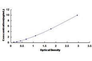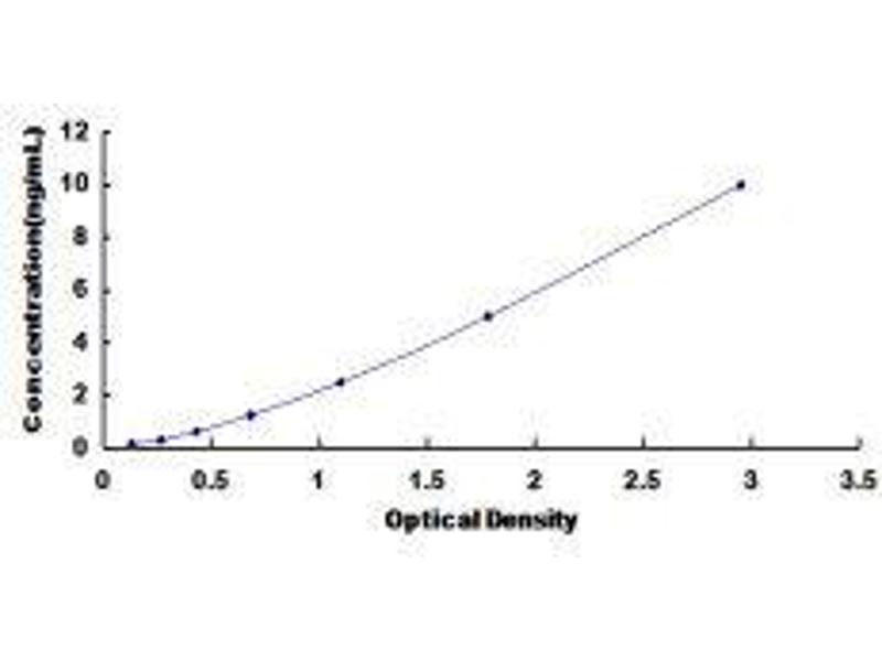 In order to make the calculation easier, we plot the O.D. value of the standard (X-axis) against the known concentration of the standard (Y-axis), although concentration is the independent variable and O.D. value is the dependent variable. However, the O.D. values of the standard curve may vary according to the conditions of assay performance (e.g. operator, pipetting technique, washing technique or temperature effects), plotting log of the data to establish standard curve for each test is recommended. Typical standard curve below is provided for reference only. -