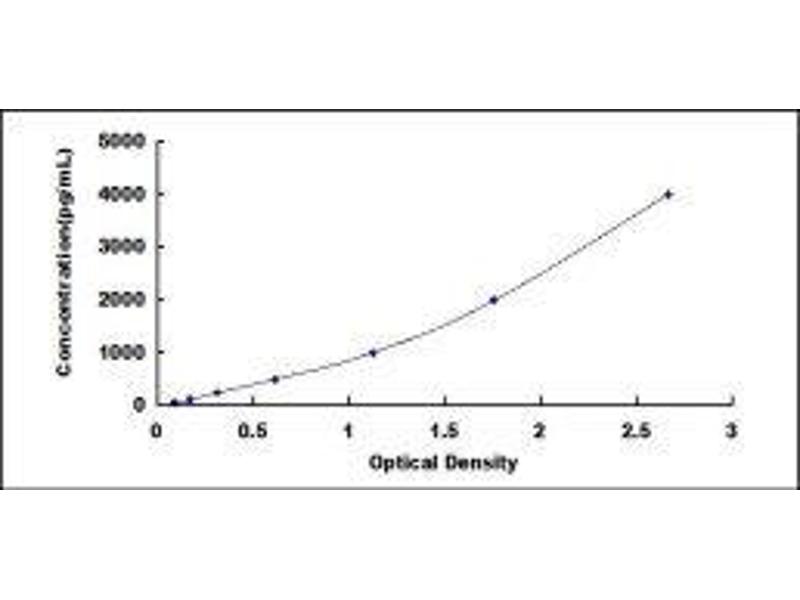 In order to make the calculation easier, we plot the O.D. value of the standard (X-axis) against the known concentration of the standard (Y-axis), although concentration is the independent variable and O.D. value is the dependent variable. However, the O.D. values of the standard curve may vary according to the conditions of assay performance (e.g. operator, pipetting technique, washing technique or temperature effects), plotting log of the data to establish standard curve for each test is recommended. Typical standard curve below is provided for reference only. -