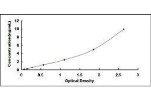 In order to make the calculation easier, we plot the O.D. value of the standard (X-axis) against the known concentration of the standard (Y-axis), although concentration is the independent variable and O.D. value is the dependent variable. However, the O.D. values of the standard curve may vary according to the conditions of assay performance (e.g. operator, pipetting technique, washing technique or temperature effects), plotting log of the data to establish standard curve for each test is recommended. Typical standard curve below is provided for reference only.
