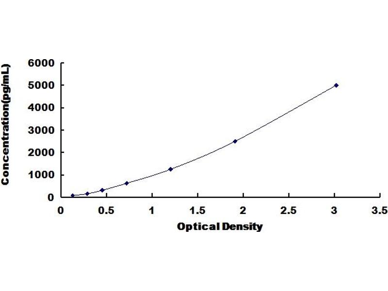 In order to make the calculation easier, we plot the O.D. value of the standard (X-axis) against the known concentration of the standard (Y-axis), although concentration is the independent variable and O.D. value is the dependent variable. However, the O.D. values of the standard curve may vary according to the conditions of assay performance (e.g. operator, pipetting technique, washing technique or temperature effects), plotting log of the data to establish standard curve for each test is recommended. Typical standard curve below is provided for reference only. -