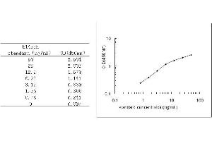 - The microtiter plate provided in this kit has been pre-coated with an antibody specific to the target. Standards or samples are then added to the appropriate microtiter plate wells with a biotin-conjugated polyclonal antibody preparation specific for target and Avidin conjugated to Horseradish Peroxidase (HRP) is added to each microplate well and incubated. Then a TMB (3,3'5, 5' tetramethyl-benzidine) substrate solution is added to each well. Only those wells that contain the target, biotin-conjugated antibody and enzyme-conjugated Avidin will exhibit a change in color. The enzyme-substrate reaction is terminated by the addition of a sulphuric acid solution and the color change is measured spectrophotometrically at a wavelength of 450 nm ± 2 nm. The concentration of target in the samples is then determined by comparing the O.D. of the samples to the standard curve.