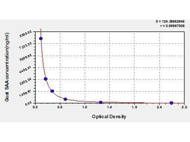Create a standard curve by reducing the data using computer software capable of generating a four parameter logistic (4-PL) curve fit. As an alternative, construct a standard curve by plotting the mean absorbance for each standard on the x-axis against the concentration on the y-axis and draw a best fit curve through the points on the graph. The data may be linearized by plotting the log of the target antigen concentration versus the log of the O.D. and the best fit line can be determined by regression analysis. This procedure will produce an adequate but less precise fit of the data.